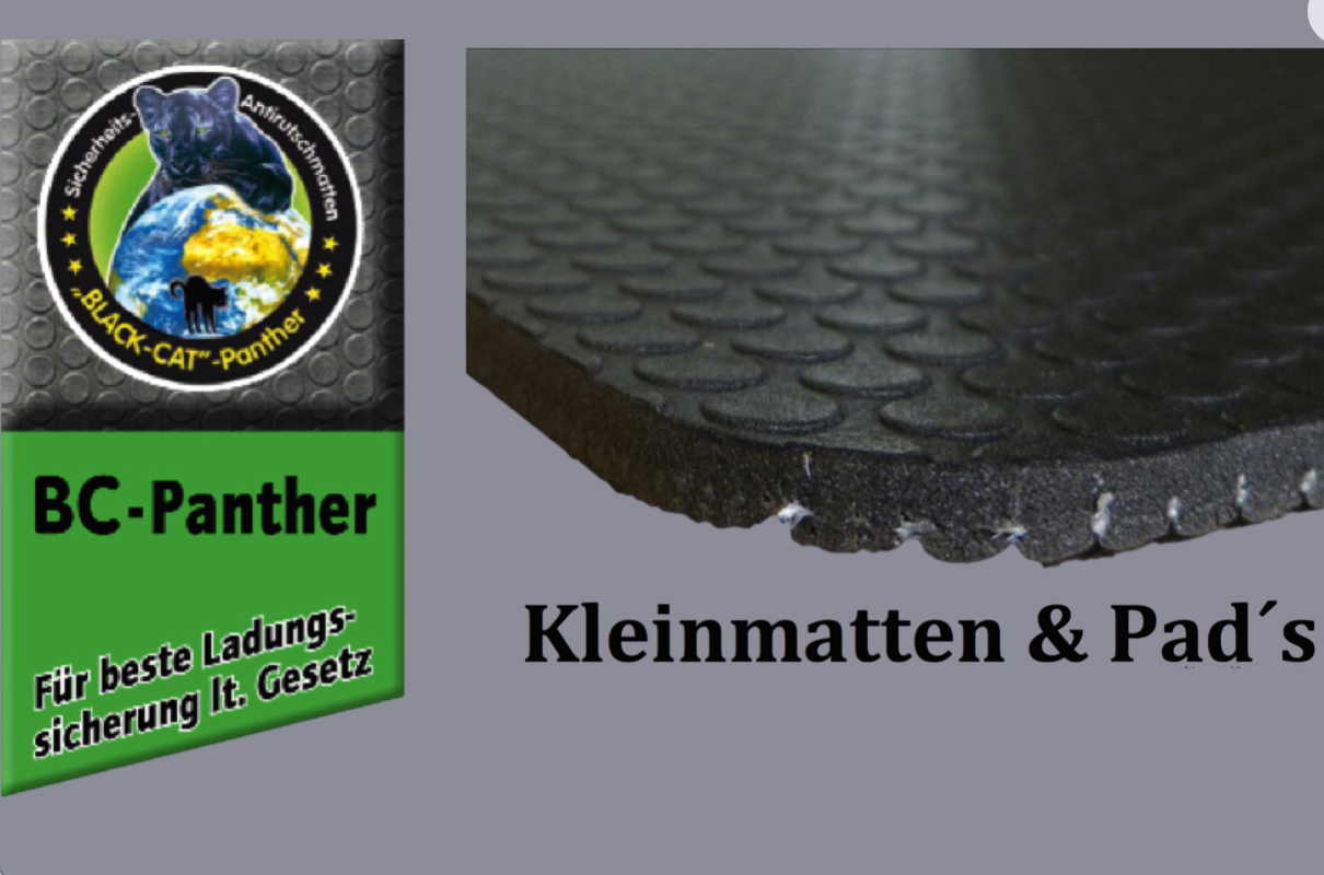 Blackcat Panther Antirutschmatten sind durch ihre Gewebeeinlage hoch reißfest und dennoch sehr flexibel. Die sehr guten Gleitreibbeiwerte sind mit bis 1,49 herausragend. Die Blackcat-Panther Antirutschmatte ist ein deutsches Produkt und entsprechend geprüft und zugelassen zur Ladungssicherung.